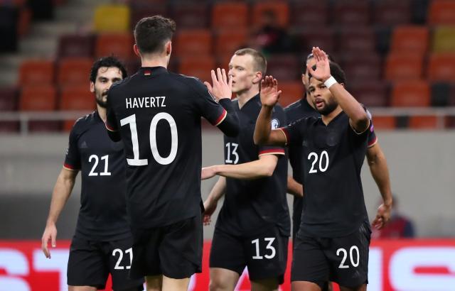 德国首发:1-诺伊尔/23-埃姆雷·詹、4-金特尔、16-吕迪格、13-克洛斯特曼/18-戈雷茨卡、6-基米希、21-京多安/10-哈弗茨(76'9-维尔纳)、19-萨内(90+3'11-尤尼斯)、20-格纳布里(90+1'14-诺伊豪斯)
